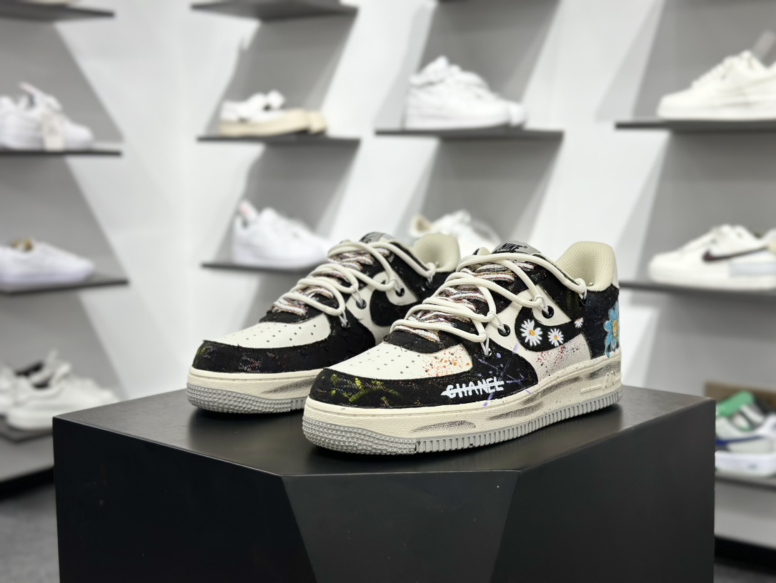 260 手绘涂鸦“蓝调雏菊”“Blue Daisy”空军一号定制板鞋 蓝调雏菊 BD7007-333
