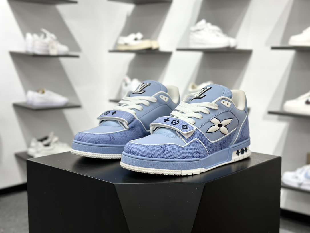 380 HS纯原礼盒版福利 LV Trainer系列高奢运动鞋 卡其白牛仔