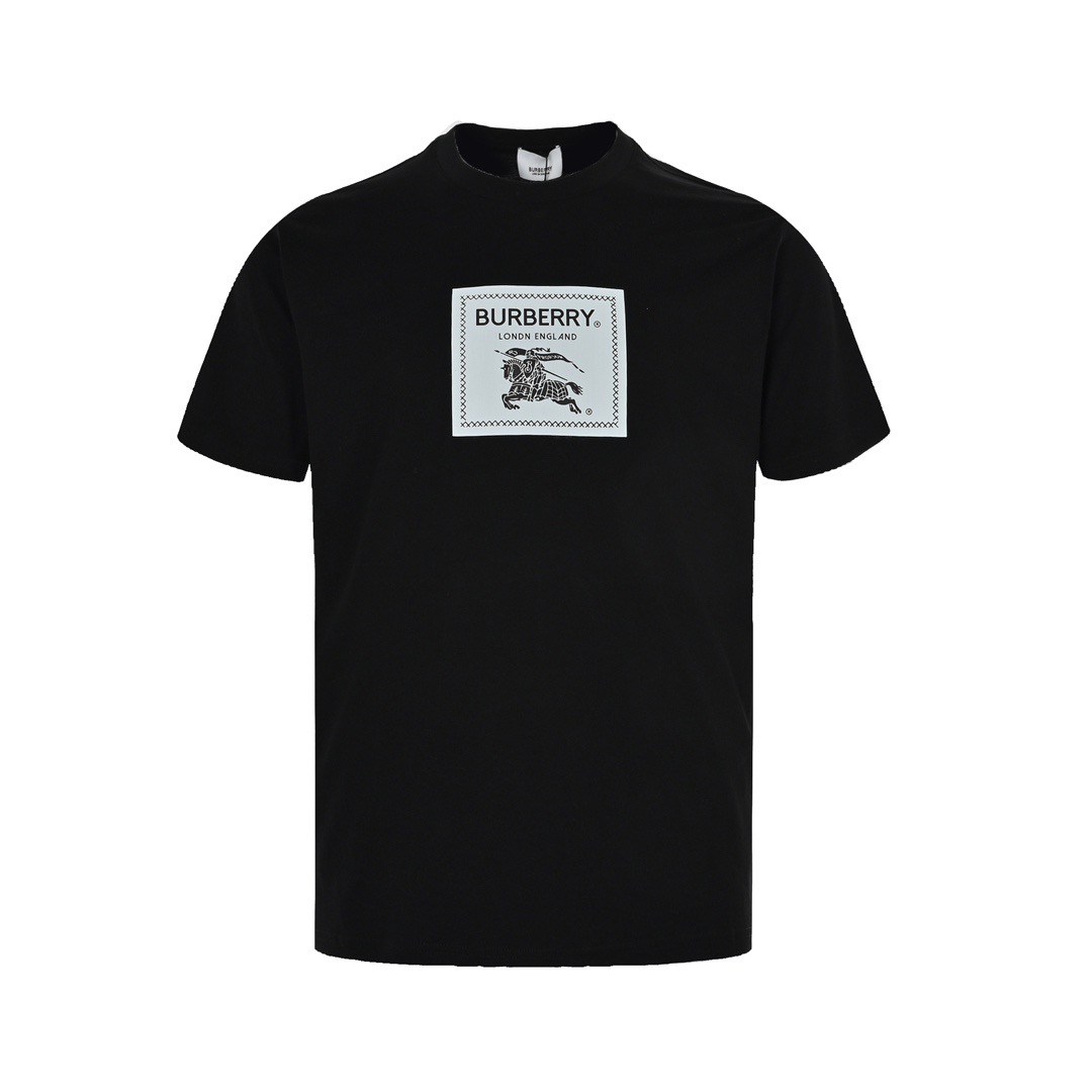 巴宝莉/Burberry 夏季新款 蓝骑士战马刺绣圆领短袖T恤 黑色/白色