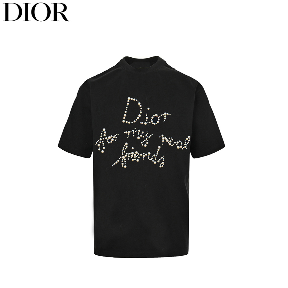 Dior/迪奥 25ss 珍珠字母短袖T恤 白 黑