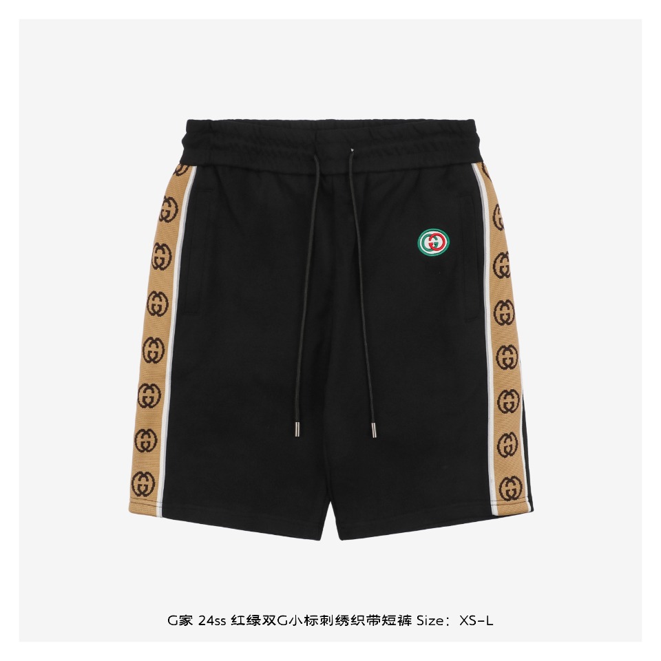 Gucci/古驰 24ss 红绿双G小标刺绣织带短裤